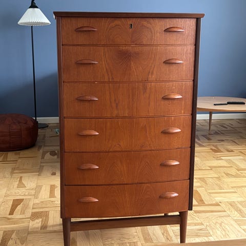 Elegant og tidløs kommode i teak fra 60’erne/70’erne med fine integrerede greb.