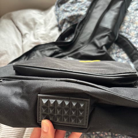 Gibson Guitar Taske i sort farve med lynlås og bærehåndtag. Tasken har en frontlomme til opbevaring af tilbehør og der er et sted, hvor stoffet er gået fra kanten, se billede. Derfor den lave pris