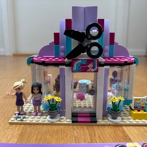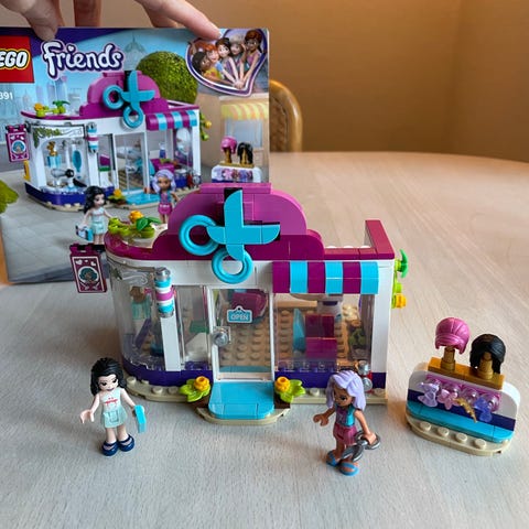 LEGO Friends 41391 Beauty Salon legetøj, anbefalet til børn fra 6 år og opefter. Sættet inkluderer en skønhedssalon med forskellige detaljer og tilbehør, samt figurer fra LEGO Friends serien. Designet til kreativ leg og rolleleg.
