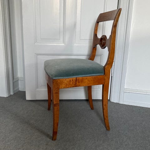 120 år gammel mahognistol, der er nypolstret og nybetrukket.