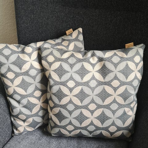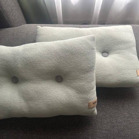 Fine 2 pyntepuder Evora , 100% uld , farve desert sage. (Lyse grøn). Som nye .