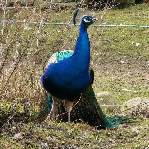 Påfuglen er en meget nysgerrig og omgængelig fugl, som elsker at følge med i hvad du går og roder med.