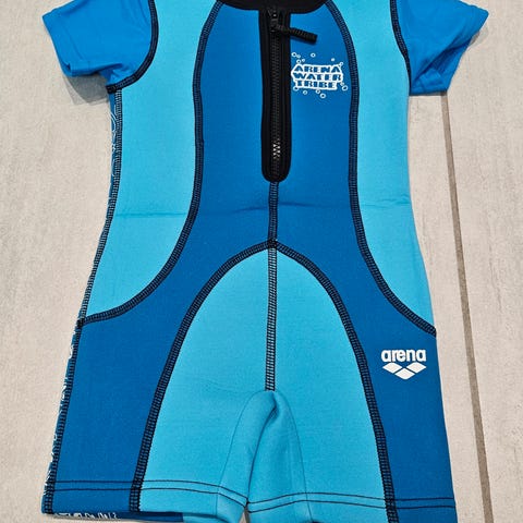 Termotrøje købt i svømmeklub til at holde varmen i vandet. Der er ingen opdrift i denne når barnet er i vandet, hvilket der godt kan være i de våddragter man ellers køber (her giver det fx udfordringer hvis de skal dykke, da dragten har en opdrift i sig selv). Termotrøjen virker som en helt almindelig "uldundertrøje" men holder på varmen. Str: 5-8 år/Small