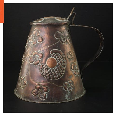 Vintage kande med låg, Gl vintage kobberkeddel m låg
