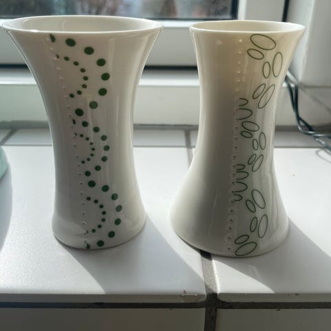 Så fine små vaser - 10 cm høje. Prisen er pr. stk. Samlet pris for alle 3 er 200 kr