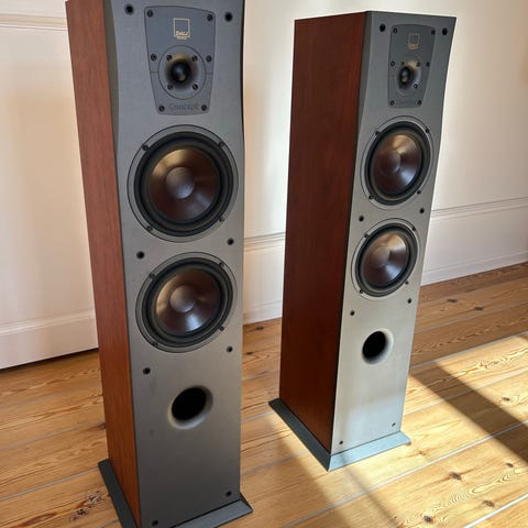 Sæt af Dali Concept 6 gulvhøjttalere med Bluesound Node 2 og klasse-d effektforstærker