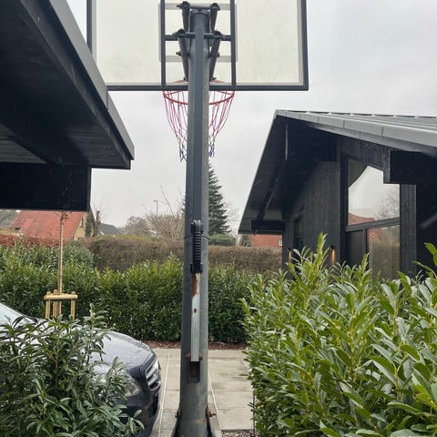 Stolpen står bagest på basen i en 20 graders vinkel som giver plads under basket kurven når man spiller.