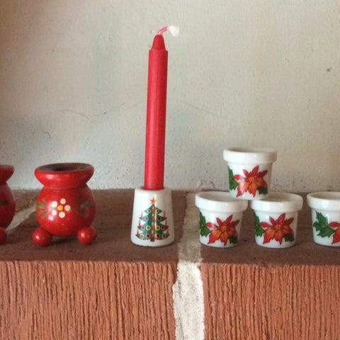 2 små lysestager fra 80’erne til små julelys porcelæn med røde hjerter Retro