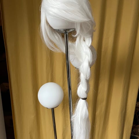 Hekseparyk langt sort hår med lys grå stribe foran i hver side
