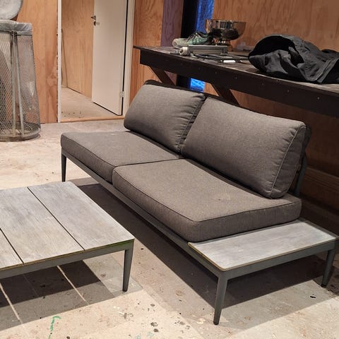 Sælger glemte bare at skrive/fortælle at benene på sofaen skal laves før man kan sidde i den.