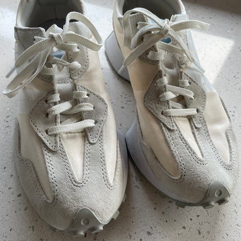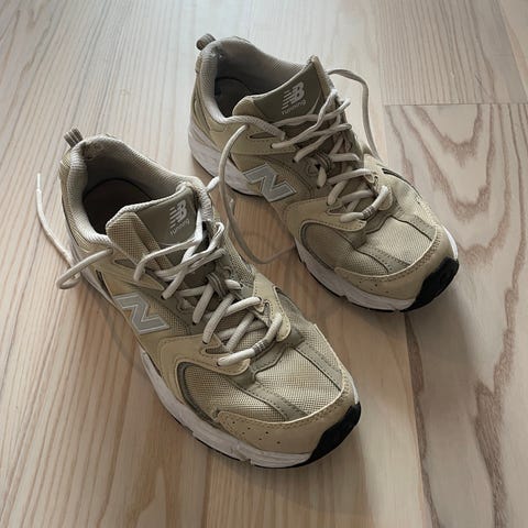 New Balance 530 - sneakers (model D MR530DWP) Hvide med selvlysende gule detaljer. Brugt meget lidt. Kan stadig fåes hos Intersport til 949,95