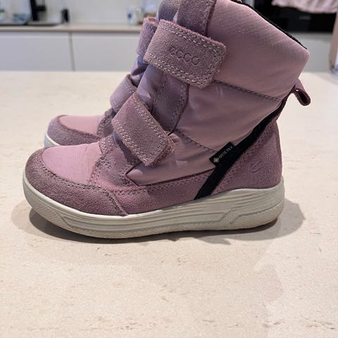 ECCO børnestøvler til pige i størrelse 34. Støvlerne er sorte med foret indvendigt for ekstra varme og komfort. Designet med snørelukning og justerbar snor øverst for bedre pasform. Sålen har et mønster for øget greb og stabilitet. En rigtig god sko, som sagtens kan tage en sæson mere. Jeg havde nok selv købt en ny indersål, men man kan godt hoppe lige i dem.