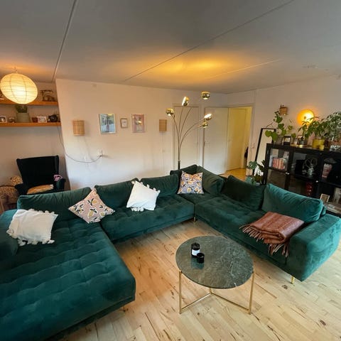 Sofaen er helt ny. Den var pakket ud i mindre end 24 timer efter vi modtog den. Vi havde desværre målt forkert, så den er for stor til vores stue.