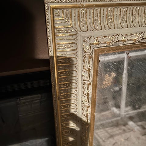 Smukt, ovalt og med en intakt spejloveflade. Flotte udskæringer.