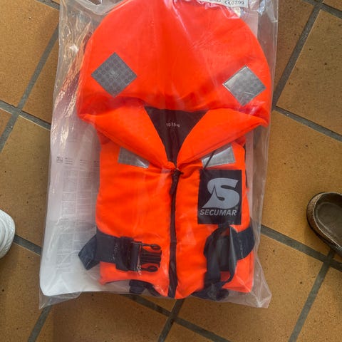Secumar Bravo Print 150 redningsvest i rød-orange farve. Vestens størrelse er 5-10 kg med en redningskapacitet på 150 Newton. Materialet inkluderer Airex skum for opdrift. Designet til voksne, med justerbare stropper for sikker pasform. Velegnet til brug ved vandsport og sejlads.
