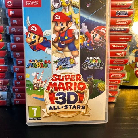 Super Mario 3D All-stars — 600 kr. (Indeholder Super Mario 64, Super Mario Sunshine og Super Mario Galaxy 1. Kun i handlen i 6 måneder i 2020-2021)