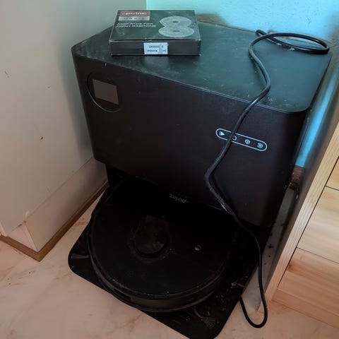 Den støvsuger og vasker rigtig godt og mopperne kører rundt og skrubber gulvet. Kører nemt over høje dørtrin.