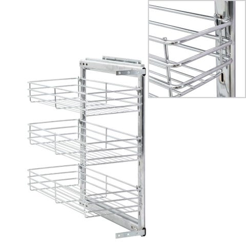 Vores udtrækkelige trådkurv er nem at montere i dit køkkenskab med det medfølgende monteringstilbehør. Denne trådkurv har 3 hylder og er en enkel, men praktisk løsning til at optimere opbevaringspladsen i dit køkkenskab. Denne køkkenkurv er fremstillet af sølvfarvet, galvaniseret tråd, har et rent og moderne udseende og er yderst holdbar. Derudover giver de medfølgende glideskinner dig mulighed for at trække trådkurven ud og skubbe den ind jævnt og støjsvagt.Vi har en overraskelse til dig! Brug rabatkoden dbaXL, når du betaler, og så får du 10% ekstra rabat. Denne rabatkode kan kun bruges til vidaXL-mærkede produkter, og den kan anvendes med et minimum købsbeløb på 750kr. God shoppingtur!