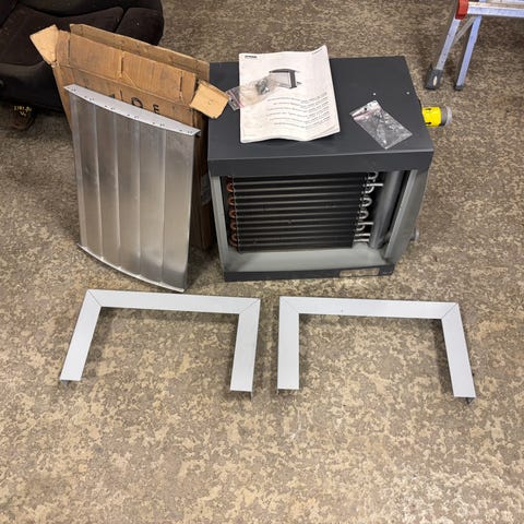 Novenco NovAir VMA og VMB varmeveksler med aluminiums- og kobberrør, designet til luftvarmeveksling. Enheden er egnet til industrielle eller kommercielle ventilationssystemer og leveres med original emballage og brugsanvisning.