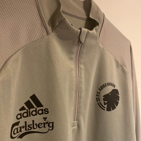 Adidas F.C. København træningstrøje i størrelse L, designet til fodbold. Trøjen er sort med pink striber på ærmerne og har ClimaCool teknologi for bedre ventilation. Materialet og designet er egnet til sportsbrug og unisex.