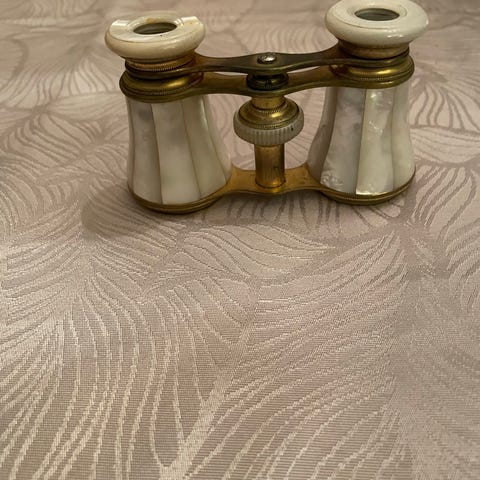 Smuk gammel teaterkikkert i sortlakeret metal med justerbar fokus.