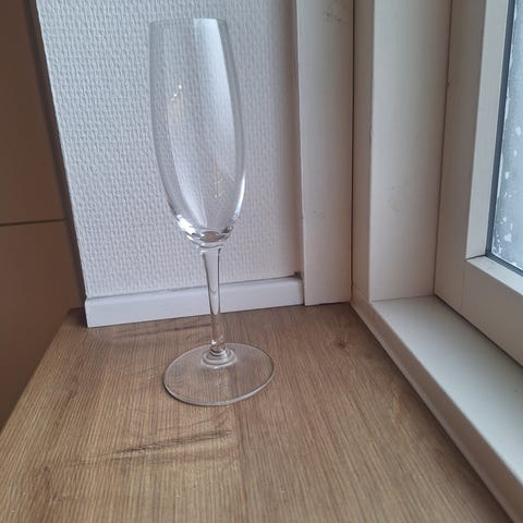 Vær klar til at skåle nytåret ind med 6 ens champagneglas. Alle i perfekt stand og uden skår. 24 cm høje.