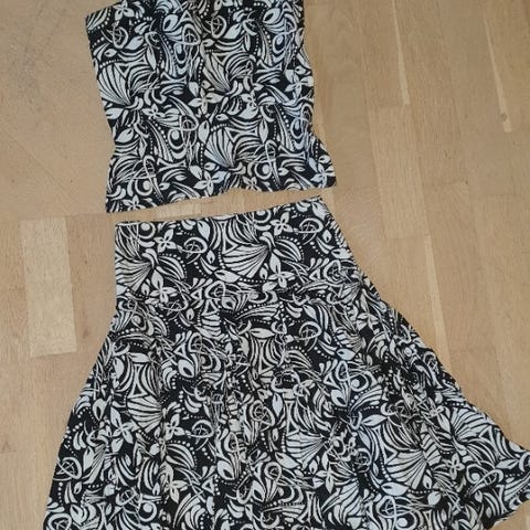 AMISU sort nederdel i størrelse 40 til kvinder. Nederdelen har en kæde og lynlås bagpå. Velegnet til hverdagsbrug og fest.