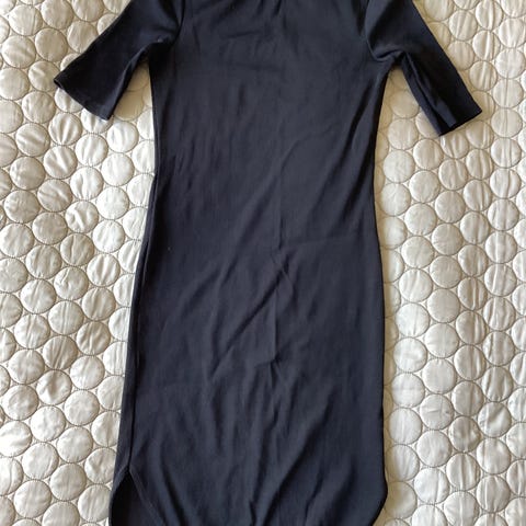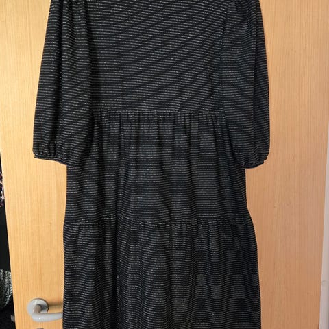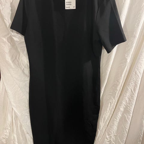 H&M Hverdagskjole i størrelse M til kvinder. Kjolen har et sort mønster og er designet til hverdagsbrug. Materiale og yderligere detaljer er ikke oplyst.