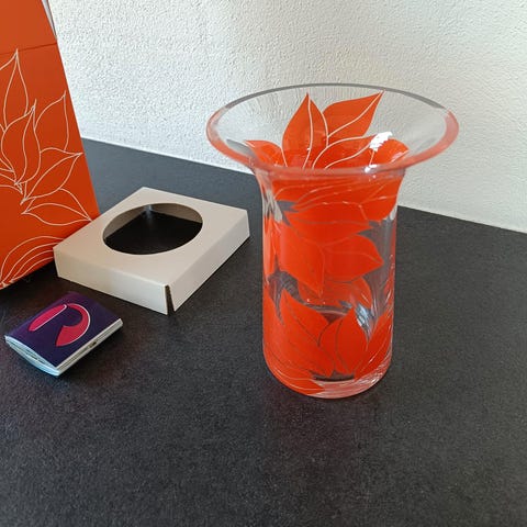Den klare glasvase er Rosendahl Filigran-vasen, som er designet af Lin Utzon.