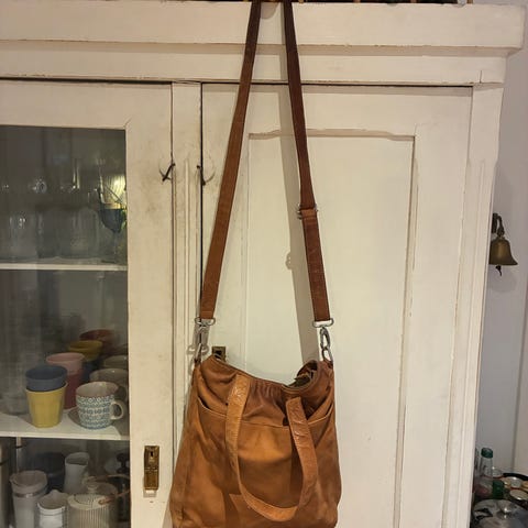 BIRKMOND skuldertaske i lys beige, fine rum indvendig og et rum med lynlås. Nypris 895,- sælges for 400,- Helt ny.