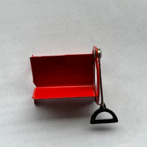 Mixmaster røremaskine. Kan køre rundt med batteri, har en flænge i toppen som ses på billede. 1960'er legetøj, er gammelt og ser ud derefter.