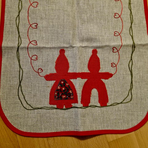 Gl fin Håndsyet lille juledug Bordløber Juleløber dug syning