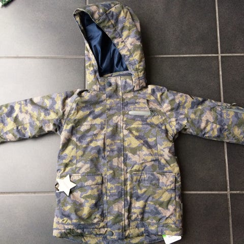 MINI A TURE Unisex Børnejakke i størrelse 140. Jakken er brun og designet til børn. Den har en varm og komfortabel foring, egnet til køligere vejr.