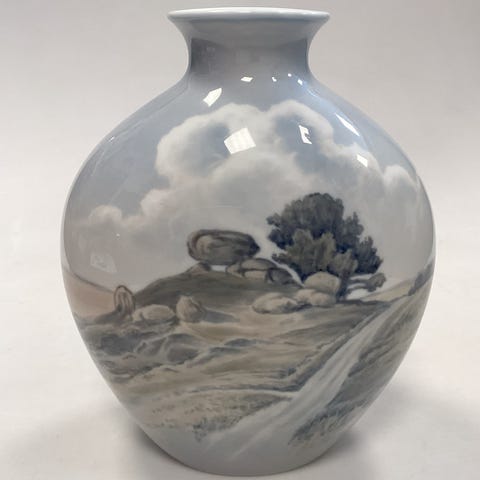 Bing og Grøndahl Art Nouveau Vase med skib No. 8779 / 506 Måler 24 cm / 9.45 inch