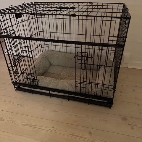 Canis Hundebur i sort metal med en dør og en bundplade. Burens design gør det egnet til transport eller som et sikkert område til hunde. Materialet er robust metal, der sikrer holdbarhed. Mål 61 x 46 x 51 cm