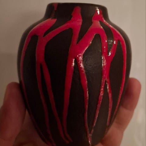Scheurich Fat Lava Strawberry gulvvase, model 517-38 fra 1970'erne. Fremstillet af keramik med en rød og sort glasur. Stemplet W. Germany i bunden.