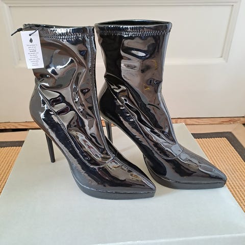 Støvletter, str. 39, Spejlblank sort lak , Ubrugt, Helt nye skinnede sorte lak støvletter i størrelse 38, 39.