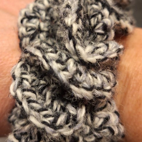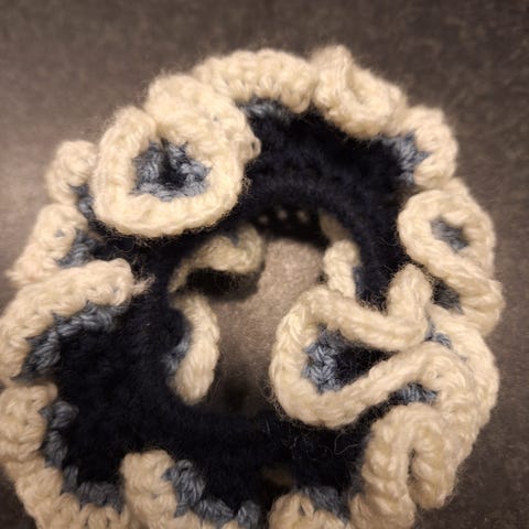 Hæklet Clutch i Mohair og Bomuld i Blå, Gul og Grå