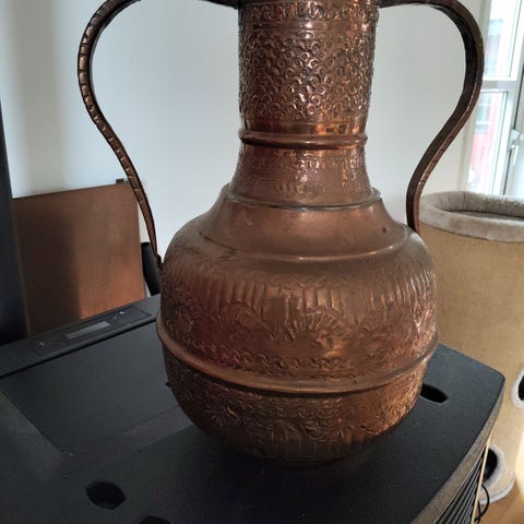 Måler 30 cm i højden, brug den sammen med andre gulvvaser ( måske til gran, den er ikke forsøgt brugt til friske blomster), eller som paraply stativ.