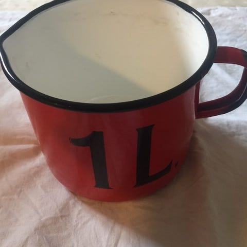 Rød emalje kande, polsk emalje kande med æbler