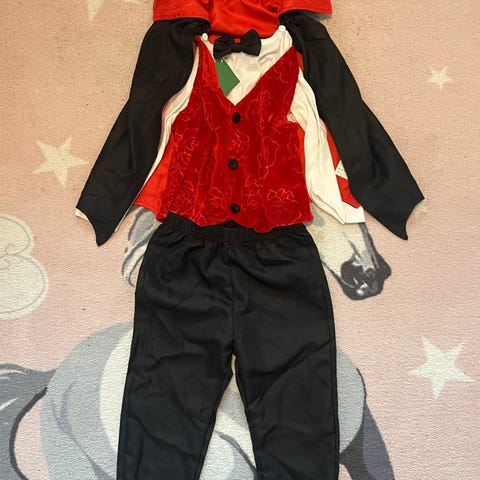 Udklædning til halloween. Nemt at tage på uden på en jakke, når man skal ud og trick or treat. Inderdelen knappes fast på kappen.