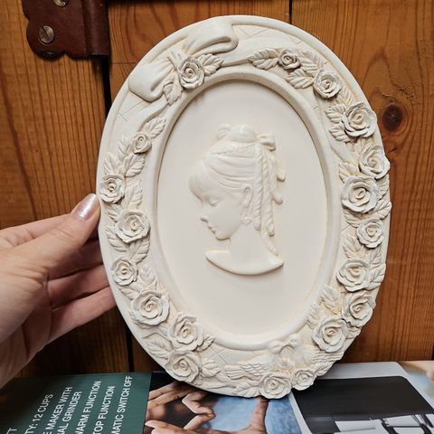 Platte gips måske Irma pigen til ophæng D 21 cm nok fra 1950-60 har lit skammer men elles fin