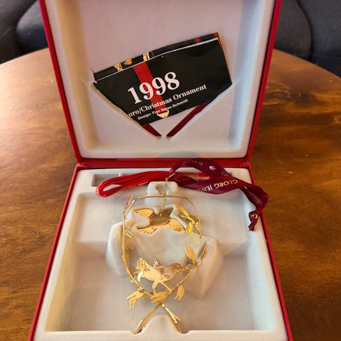 Georg Jensen 1995 Julepynt, forgyldt ornament med originalt bånd. Hellige tre konger som ligger i original æske.
