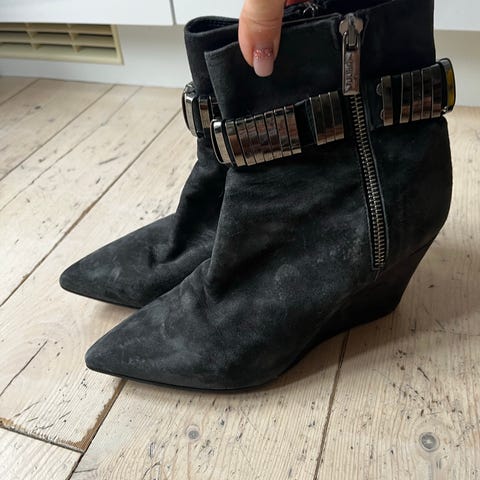 Apair støvler, sort ruskind. Kun brugt få gange. Hælhøjde: 8 cm.