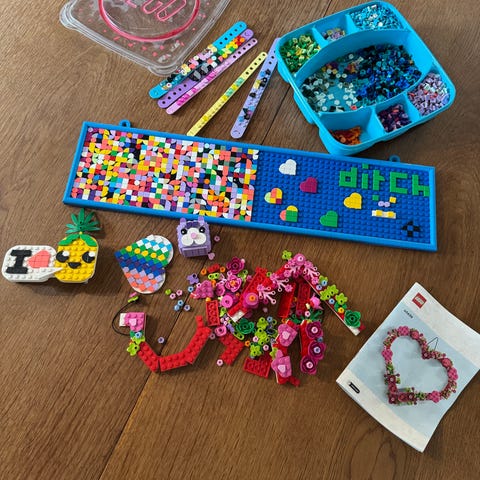 LEGO DOTS Kreativt Sæt med forskellige farverige brikker og dekorative elementer. Indeholder små byggeklodser i flere farver, der kan bruges til at skabe personlige designs og kunstprojekter. Velegnet til kreativ leg og håndværk.