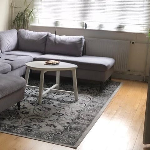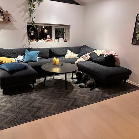 Det er brugt kort tid og ligger i vores gæsteværelse, så standen er helt fint. Synes desværre ikke at farven helt passer til sofaen. Det måler 230x160 cm.