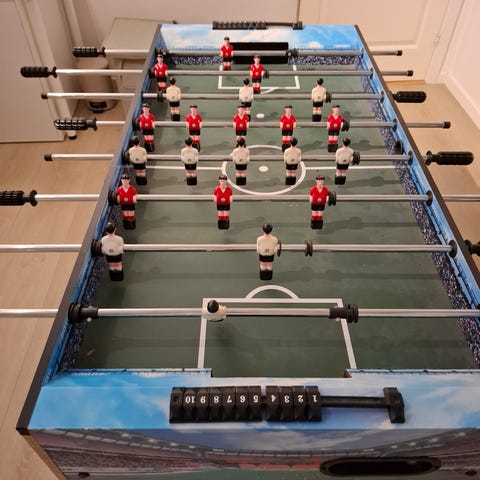 Tung, stabilt og super godt bord til de sjove timer. Vores drenge er desværre blevet for store til at spille, men der er masser af sjove spil i bordet endnu.