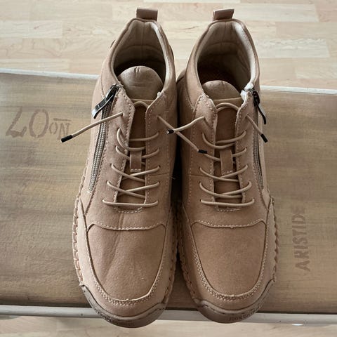 Sneakers, str. 38, AMA-B/DELUXE, HVIDE, ÆGTE SKIND, Næsten som ny, SUPER FEDE HVIDE SNEAKERS MED GULD SÅLER STR 38 SÆLGES.