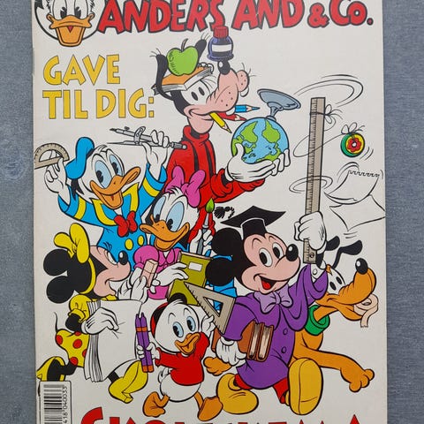 Forsiden er med illustrationer af Disney-figurer. Bladet indeholder forskellige historier og er et sandt samleobjekt! Tegneserie Mickey Mouse Fedtmule Disney Cartoon