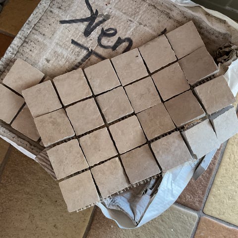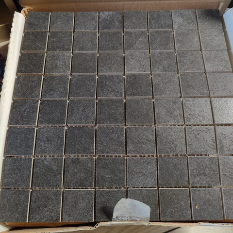 8 pakker mosaikfliser i gråbrune nuancer. Fejlkøb og helt ubrugt. I alt til 16 kvm gulv. Hver pakke indeholder 22 ark svarende til 2 kvm. Hver lille mosaik er 2.5x2.5 cm. og 3.5 mm. i tykkelsen.